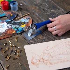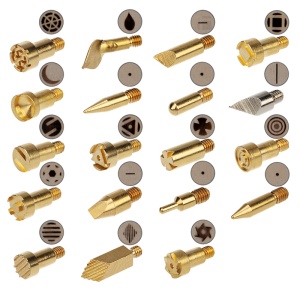 С помощью этих насадок можно создавать красивые картины, выжигая на дереве различные узоры, выполнять выжигание на изделиях из кожи, резать пластмассу, вырезать на воске или пенопласте и т.п. Все насадки закрепляются с помощью резьбового соединения.