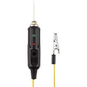 Позволяет определить полярность напряжения (+/-), выявить замыкание и обрыв проводки без необходимости размыкать проводку - за счет возможности ввести тонкую иглу непосредственно через изоляцию в проводку или проверить предохранители, лампочки и диоды. Корпус выполнен из ударопрочного пластика и снабжен проводом с зажимом типа «крокодил», светодиодным и звуковым индикатором.