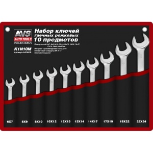 Размеры ключей: 6x7, 8x9, 8х10, 10х12, 12х13, 13x14, 14х17, 17х19, 19х22, 22х24 мм